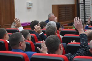 В рамках заседания прошло тайное голосование, по итогам которого были определены председатель Совета 8 Созыва и его заместитель — ими стали Василий Слепухин и Тофик Искендеров. Были сформированы профильные комиссии Совета: