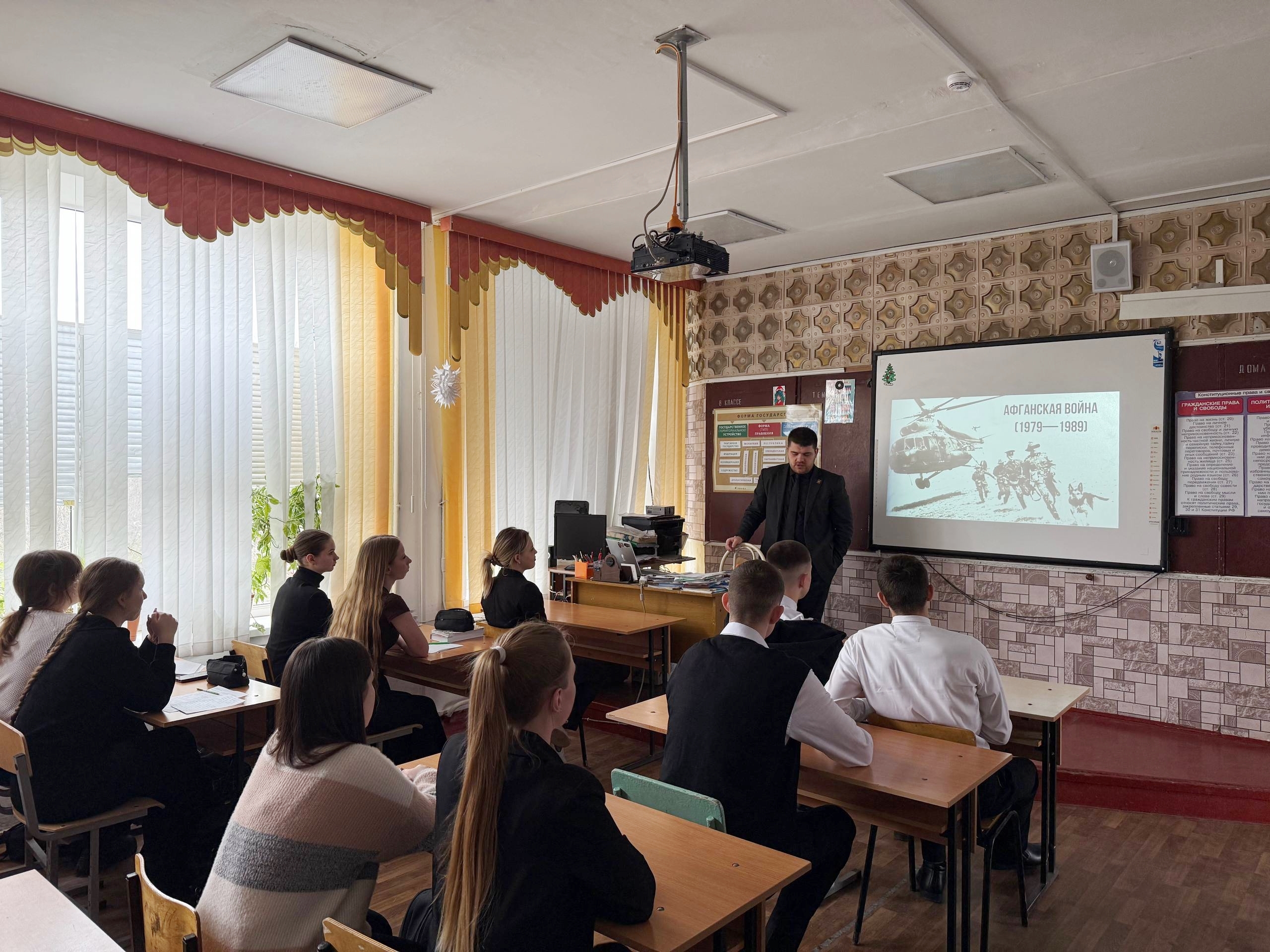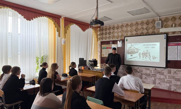 Молодой депутат Кореновского района Анатолий Деменко провел для учащихся старших классов СОШ №15 п. Новоберезанского открытый урок, посвященный 37-й годовщине вывода Советских войск из Афганистана.