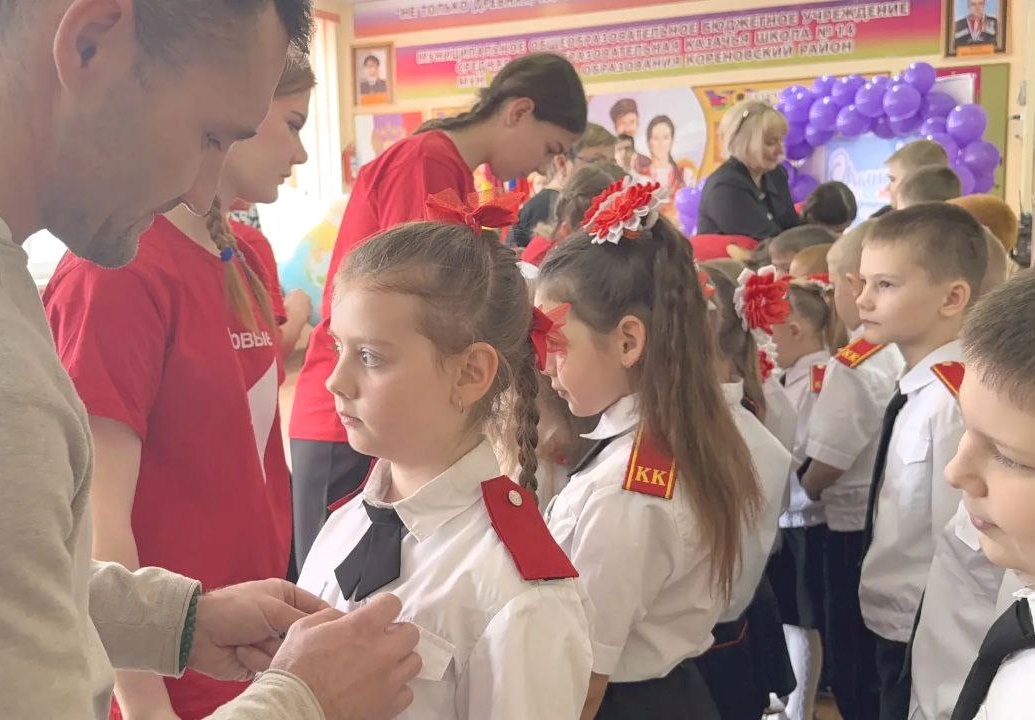 Новых орлят и пионеров напутствовали директор школы Наталья Канюка и молодой депутат Кореновского района Олег Кирпиченко.