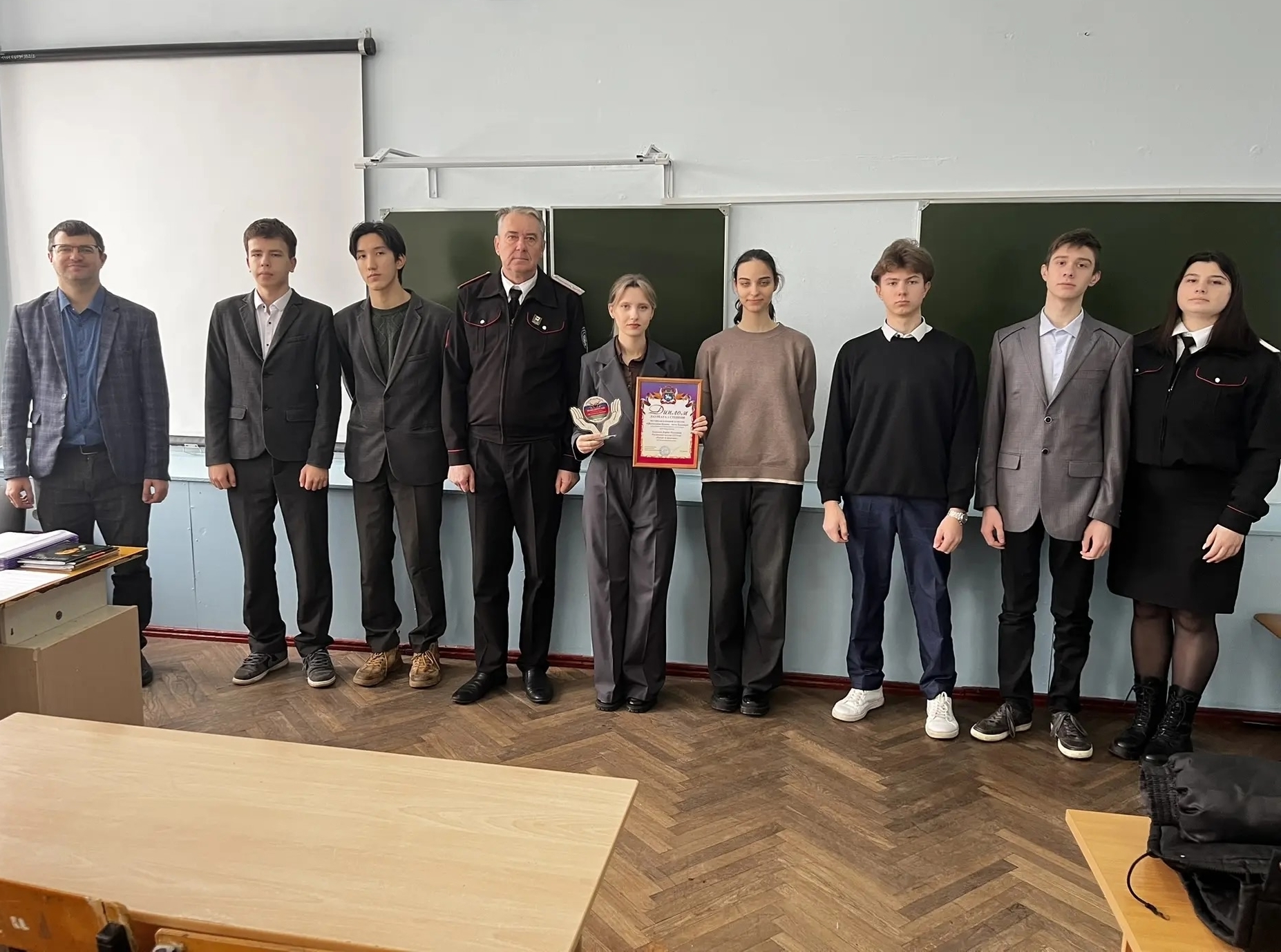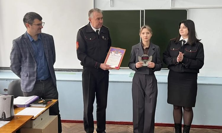 Атаман Кореновского районного казачьего общества Олег Бычков и молодой депутат Юрий Пушин поздравили призера и вручили заслуженную награду, пожелав дальнейших творческих успехов и побед в новых конкурсах.