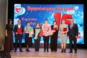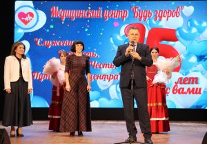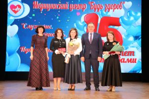Депутат районного Совета Элла Колесникова и глава района Сергей Голобородько в стенах городского Дома культуры поздравили коллектив медицинского центра «Будь здоров» с 15-летием.
